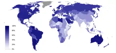 | 53 | 73.7% | 2011 | 0.5% | تقديرات 2005-2010 | |