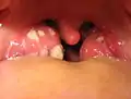 - الالتهاب الشُّعَبي الحادّ؛ تعفّن مؤقّت للقصبة الرّئوية، ينتج عن انتقال جراثيم الفم إليها (بعد اجتياز الجراثيم للدّرع الواقي الأوّل -اللّوزتين-وذلك إمّا لكثرتها، أو لضعف طارئ في مقاومة الجسم عند تعرّضه مثلا لزكام أو لمجرى الرّيح..).