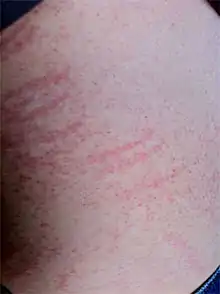 - -التهاب الجلد العصبي: أو حزاز بسيط مزمن. وهو اضطراب يصيب الجلد ويحدث نتيجة الحك المستمر للجلد، ويظهر عآدةً في، فروة الرأس ، الرقبة ، الرسغ ، الذراع ، الكاحل .