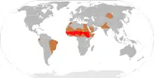 وصفت أول جائحة في أفريقيا في عام 1840. الأوبئة الأفريقية أصبحت أكثر شيوعًا بكثير في القرن العشرين. وكانت الرئيسية في نيجيريا وغانا في 1905–1908. في التقارير في وقت مبكر توفي عدد كبير من الناس من هذا المرض
