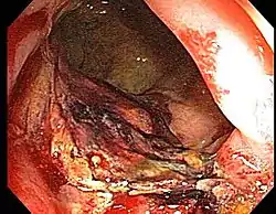 ![]() تنظير القولون يُظهر التهاب المستقيم الإشعاعي تنظير القولون يُظهر التهاب المستقيم الإشعاعي | |