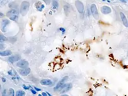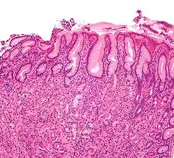 ![]() صورة مجهرية لالتهاب المعدة . صبغة الهيماتوكسيلين والإيوسين. صورة مجهرية لالتهاب المعدة . صبغة الهيماتوكسيلين والإيوسين. | |