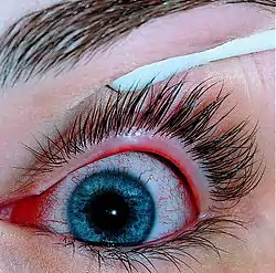 | الأعراض | عين حمراء ، والتهاب [1] |