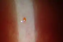 - Parcell, BJ.; Sharpe, G.; Jones, B.; Alexander, CL. (2013). "Conjunctivitis induced by a red bodied mite, Neotrombicula autumnalis". Parasite. 20: 25. doi:10.1051/parasite/2013025. PMC 3718535. PMID 23823162. الوسيط