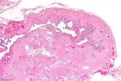 ![]() صورة مجهرية لالتهاب برزخ البوق العقد تبين سمك عقدي مميز. صبغة الهيماتوكسيلين واليوزين. صورة مجهرية لالتهاب برزخ البوق العقد تبين سمك عقدي مميز. صبغة الهيماتوكسيلين واليوزين. | |