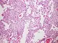 ![]() صورة مجهرية لتأذي سنخي منتشر، وهو صفة نسيجية للالتهاب الرئوي الخلالي الحاد. الصورة باستخدام صبغة الهيماتوكسيلين والأيوزين. صورة مجهرية لتأذي سنخي منتشر، وهو صفة نسيجية للالتهاب الرئوي الخلالي الحاد. الصورة باستخدام صبغة الهيماتوكسيلين والأيوزين. | |