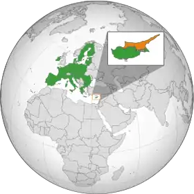 رسميًا، الدولة الجزرية قبرص هي جزء من الاتحاد الأوروبي، تحت السيادة القانونية لجمهورية قبرص. القبارصة الأتراك مواطنون في جمهورية قبرص وبالتالي في الاتحاد الأوروبي، وكان لهم الحق في التصويت في انتخابات البرلمان الأوروبي لعام 2004 (على الرغم من تسجيل بضع مئات منهم فقط). تم تعليق مكتسبات الاتحاد الأوروبي الجماعية إلى أجل غير مسمى في الثلث الشمالي من الجزيرة، والتي ظلت خارج سيطرة جمهورية قبرص منذ الغزو التركي عام 1974. ورفضت الطائفة القبرصية اليونانية خطة عنان لتسوية النزاع القبرصي في استفتاء أجري في 24 نيسان / أبريل 2004. لو كان الاستفتاء لصالح اقتراح التسوية، لكانت الجزيرة (باستثناء مناطق القاعدة السيادية البريطانية) قد انضمت إلى الاتحاد الأوروبي باسم جمهورية قبرص المتحدة. يتم التعامل مع علاقات الاتحاد الأوروبي مع المجتمع القبرصي التركي من قبل المديرية العامة للتوسيع التابعة للمفوضية الأوروبية.[68]