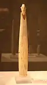 ناب فرس النهر برأس منحوت لرجل ملتح بغطاء رأس يشبه الطارة ، أواخر نقادة الأول - أوائل نقادة الثانية ، 3800-3400 قبل الميلاد. متحف بروكلين.