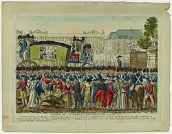 كان استياء لويس السادس عشر من الثورة قد تزايد، فحثّه شقيقه الكونت دي أرتواز وكذلك زوجته الملكة ماري أنطوانيت، دعم المهاجرين والوقوف بموقف أكثر حدية ضد الثورة. رفض الملك أي محاولة للاستعانة بالقوى الأجنبية من دول أوروبا الأخرى ضد الجمعية الوطنية. وفي نهاية المطاف، خوفًا على سلامته وكذلك سلامة أسرته قرر الهرب من باريس إلى حامية الفارين قرب الحدود الألمانية، بعد أن تأكد من ولاء الحاميات الحدودية. هربت العائلة في ليلة 20 يونيو 1791 من قصر التويلري في باريس وهي ترتدي زي الخدم، بينما كان الخدم يرتدون زي النبلاء. فشلت المحاولة، ففي مساء اليوم التالي، قبض على الملك والعائلة قرب فارين، وجلب هو عائلته إلى باريس تحت الحراسة وهو لا يزال يرتدي ثياب الخدم؛ ثم التقى مجموعة من ممثلي أعضاء الجمعية؛ في حين قامت حشود باستقبال الموكب الملكي صامتة.[56]