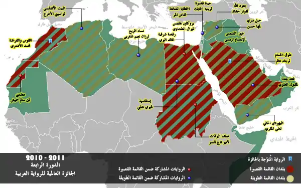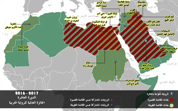 يأتي كتّاب القائمة الطويلة من الأردن، تونس، الجزائر، السعودية، السودان، العراق، الكويت، لبنان، مصر، المغرب واليمن، وبدت حصة المغرب العربي منها سبع روايات، تحديدًا ثلاث روايات للجزائر، واثنتان لكل من تونس والمغرب.[3]