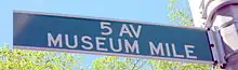 - Street signs saying "Museum Mile" actually extend to 80th Street. "Street View: 80th Street and Fifth Avenue, New York" Google Maps نسخة محفوظة 15 سبتمبر 2020 على موقع واي باك مشين.