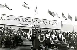 | "وانطلقت كلماتي حارةً مؤمنة، تُعلن باسم الأسرة الأردنية الواحدة تأسيس الجامعة الأردنية في الأردن الغالي في اليوم الثاني من أيلول عام 1962، وهأنَذا والحمد لله أعيش لأشهد هذا الاحتفال الباسم بافتتاح الجامعة الغالية وأسعد بأن أحمل شهادتها وردائها وشارتها، فألف حمدٍ للعلي القادر على كل ما أنعم وقدر" |