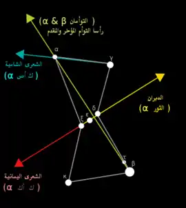 | كواكب منيرة مشهورة | خلالهن أنجم صغيرة | |
