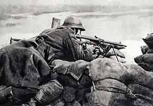![]() جندي بريطاني في أحد خنادق الجبهة الغربية في الحرب العالمية الأولى. | |||||||||