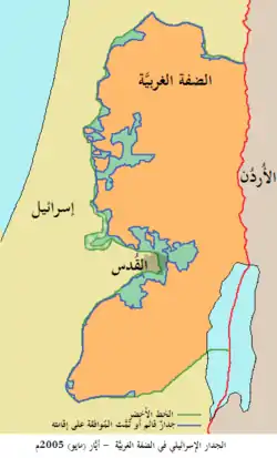 جدار الفصل العنصري (حسب الفلسطينيين) أو الحاجز الأمني (حسب الإسرائيليين) هو عبارة عن جدار طويل بنته إسرائيل في الضفة الغربية قرب الخط الأخضر وعلّلت ذلك بمنع دخول سكان الضفة الغربية الفلسطينيين إلى الأراضي المحتلة أو المستوطنات الإسرائيلية القريبة من الخط الأخضر بينما يقول الفلسطينيون أنه محاولة إسرائيلية لإعاقة حياة السكان الفلسطينيين أو ضم أراضٍ من الضفة الغربية إلى إسرائيل. يتشكل هذا الجدار من سياجات وطرق دوريات، وفي المناطق المأهولة بكثافة مثل منطقة المثلث أو منطقة القدس تم نصب أسوار بدلا من السياجات. بدأ بناء الجدار في 2002 في ظل انتفاضة الأقصى، وفي نهاية عام 2006 بلغ طوله 402 كم، ويمر بمسار متعرج حيث يحيط معظم أراضي الضفة الغربية، وفي أماكن معينة، مثل قلقيلية، يشكل معازل، أي مدينة أو مجموعة بلدات محاطة من كل أطرافها تقريبا بالجدار. تعارض السلطة الوطنية الفلسطينية والمنظمات الفلسطينية بناء "جدار الضم والتوسع العنصري".