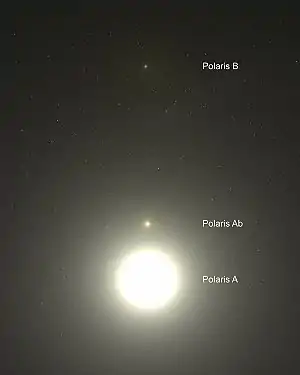 | القدر المطلق (MV) | -3.6(α UMi Aa)[1] 3.6(α UMi Ab)[1] 3.1(α UMi B)[1] |