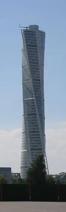 من فئات العمارات فاز المبنى السكني (turning torso) المصمم من قبل سانتياغو كالاترافا، ارتفاعة أكثر من 190 مترا، هو أعلى مبنى في السويد والثاني في أوروبا. الهيكل من الخرسانة المسلحة والصلب، ويضم 147 شقة سكنية على 45 طابقا، مساحة كل منها 400 متر مربع. سرعة المصاعد = 18 كم / ساعة، ويمكن أن تصل إلى الطابق الأعلى في 38 ثانية فقط. الجذع المتحول أصبح معلم دولي جديد لشكلة المميز الذي كان مستوحى من نحت لجذع الأنسان الذي يلف حول نفسه ؛