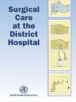كتاب الرعاية الجراحية في مشافي الضواحي؛ من إصدارات منظمة الصحة العالمية صدر عام 2003 ويقع في 514 صفحة وتوفر المنظمة العديد من ملفات العروض التقديمية الداعمة له لشرح فصوله[1] واستعمال هذه الشروح في التعليم.[2] [3] [4]