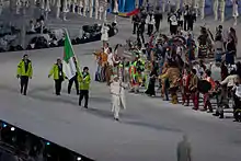 الرياضيون يدخلون الملعب أثناء المراسيم الافتتاحية.