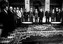 21 نيسان/ أبريل - وفي المؤتمر الأول لجبهة التحرير الوطني، ١964، أكد أحمد بن بيلا بقوة ويقين أولوية العمل الثوري على أعمال البناء١6 المؤسساتي وإعادة تنظيم البلاد. وباستنكاره لأطروحة أولوية بناء الدولة كان يشير إلى طغمة بومدين، في حين أن خطاب الرئيس في هذا المؤتمر يشير إلى "العناصر المرتبطة بالبرجوازية" على أنها خطر على البلد، ما يقدم مثالاً على "الاستخدام المستمر في هذه الحقبة من التاريخ الجزائري لترسيمات تحليل ماركسية بهدف تنميق المواجهات من أجل السلطة بصراعات الطبقات". لكن لعبة تحالفات بن بيلا، واختيار سياسة "التسيير الذاتي" أدتا إلى أزمة. لأن هذه التحالفات لم تسمح له بتوطيد سلطته بشكل لا جدل فيه وترسيخ الدولة بشكل دائم؛ كما أن التسيير الذاتي لا يتوافق مع حالة العلاقات الاجتماعية.