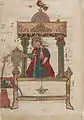 ساعة القلعة التلقائية من اختراعات الجزري ، رسم من القرن الرابع عشر.