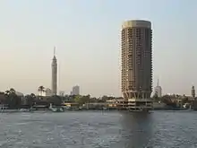 فندق سوفيتيل الجزيرة في الأمام وبرج القاهرة في الخلف.