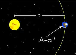 تشع الشمس طاقتها بشكل متماثل في جميع الاتجاهات. ويكون نصيب الأرض من هذه الطاقة المنبعثه هو جزء ضئيل يكافئ المساحة المقطعية للأرض (مساحة دائرة قطرها هو قطر الأرض مع الغلاف الجوي) نسبة للمساحة السطحية للكرة المحيطة بالشمس والتي تقع عليها الأرض: