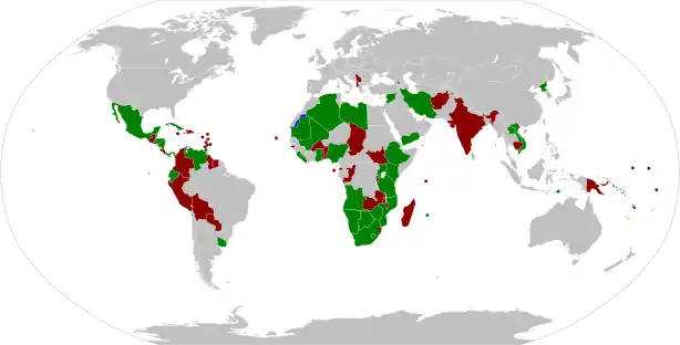 فانواتو || 27 نوفمبر 1980 || تم تجميد: 24 نوفمبر 2000، ولكن تمت استئنافها في 09 اغسطس 2008 [89]