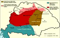 مع سقوط دولة هابسبورغ تزايدت أطماع دول الجوار بضم المناطق الهنغارية المجاورة ذات التجمعات القومية المشابهة إليها وعملت على فرض حقائق على الأرض تخدمها في مؤتمر الحلفاء في باريس للسلام، وفي المقابل جهدت الحكومة المجرية الناشئة في استيعاب الأقليات القومية في فدرالية متعددة القوميات على النموذج السويسري. لم يعد من الممكن إنقاذ الوضع في الجنوب حيث أعلن ممثلو السلاف (صرب، كروات) في زغرب في 8 أكتوبر اتحاد سلاف الجنوب (اليوغو-سلاف) وأعلن برلمان كرواتيا/سلافونيا المحلي عن فك الارتباط بالمجر، وأمرت قوات الحلفاء الفرنسية المرابطة هناك المجريين بالانسحاب، وفي الأول من ديسمبر اتحدت هذه المناطق هي مع صربيا وأعلنت المملكة اليوغسلافية التي نصب الأمير الصربي كارادجوردجيفيتش ملكا عليها، كما الحق بالمملكة الجديدة كل من الجبل الأسود ومنطقة فويفودينا ذات الأغلبية الناطقة بالمجرية. في الشرق جرت عملية انفصالية مشابهة في منطقة ترانسلفانيا المختلطة (بالمجرية: Erdély) (بالألمانية: Siebenburgen) حيث قرر البرلمان الروماني ضم تلك المناطق واحتلتها رومانيا بالفعل وأقامت فيها مؤتمرا وطنيا أقر في 1 ديسمبر الانضمام إلى رومانيا. أما في الشمال ذو الأغلبية السلوفاكية (58%) والذي كان لا يزال تحت سيطرة القوات الهنغارية فلم يكن يتحمّس السلوفاك لمطالب الدولة التشيكية الناشئة في براغ بضمهم وقبلوا بالحم الذاتي الذي اقترحته بودابست، في حين نجحت القوات الهنغارية في نوفمبر بالتصدي لمحاولة التشيك غزو المنطقة عسكريا، إلا أن قيادة الحلفاء حددت خطا فاصلا وأمرت القوات الهنغارية بالانسحاب وتسليم الإدارة المدنية إلى التشيك. في أقصى الشرق اتحدت المناطق المختلطة ذات الأغلبية الروثينية/الأوكرانية مع جمهورية أوكرانيا السوفييتية.[4]