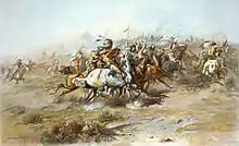 وبعد أسبوع واحد ـ في الثالثة من عصر يوم 25 يونيو 1876 ـ داهمت فرقة الفرسان السابعة بقيادة كاستر مخيمًا كبيرًا لقبائل الشايان واللاكوتا على امتداد نهر ليتل بيغهورن، وكانت هذه هي آخر معارك كاستر. ولا يعرف على وجه الدقة دور أو تحركات الجواد الجامح في هذه المعركة، إلا أن الثابت هو أن الجواد الجامح لعب دورًا بارزًا في المعركة. وقد شهدت بجسارته العديد من روايات شهود العيان من الهنود الحمر. فقال "رجل الماء"، وهو واحد من خمسة مقاتلين فقط من قبائل الأراباهو شاركوا في المعركة: لقد كان (الجواد الجامح) أشجع رجل رأيته على الإطلاق. كان يقترب راكبًا من الجنود، ويصيح في مقاتليه، وكان كل الجنود يطلقون النار نحوه، ولكنه لم يًصَب قط".[2] كما شهد "الجندي الصغير" ـ وهو أحد مقاتلي السو في هذه المعركة ـ بأن الجواد الجامح كان "أعظم مقاتل في المعركة كلها".[3]