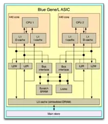ASIC تدمج معالجين 700 ميغا هيرتز من PowerPC 440، يحوي كل منهما على:
