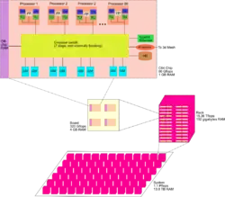 كل عقدة حساب أو إدخال / إخراج العقدة هي دارة متكاملة محددة التطبيق (بالإنجليزية: ASIC [الإنجليزية]) مع رقاقة ذاكرة ديناميكية عشوائية الوصول (بالإنجليزية: DRAM)