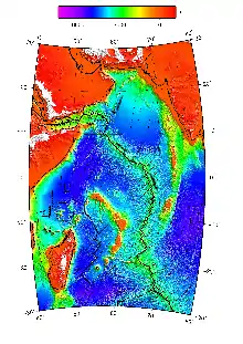 خريطة أعماق منطقة وسط المحيط الهندي