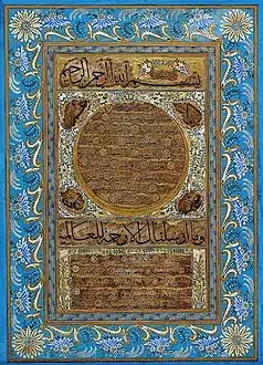 |CitationClass=تم تجاهله (مساعدة); تحقق من التاريخ في:|سنة=(مساعدة) - إدهام, محمد حنش. "كتابة المصحف الشريف عند الخطاطين العثمانيين" (PDF). مجلة البحوث و الدراسات القرآنية - العدد 7 - السنة 4 - صفحة 124. مركز ودود للفهارس وكتب التحقيق. مؤرشف من الأصل (PDF) في 7 مارس 2016. اطلع عليه بتاريخ رمضان 1435 هـ. الوسيط