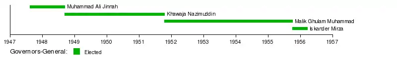الحاكم العام لباكستان، منصب ممثل العرش البريطاني في باكستان منذ استقلال البلاد في عام 1947. عندما أصبحت باكستان جمهورية في عام 1956، تم إلغاء هذا المنصب.