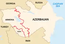 حدود أرمينيا وأذربيجان باللون الأحمر