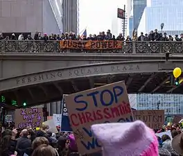 |CitationClass=تم تجاهله (مساعدة) - Tiefenthäler, Ainara (January 20, 2018). "Women's March 2018: Thousands of Protesters Take to the Streets". نيويورك تايمز. مؤرشف من الأصل في 23 مايو 2019. اطلع عليه بتاريخ 21 يناير 2018. الوسيط