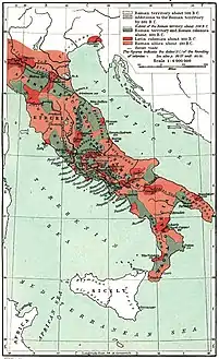 الحرب الاجتماعية وعرفت أيضاً بإسم الحرب الإيطالية و الحرب المارسية و حرب الحلفاء من سنة 91 إلى 88 ق م، الحرب بدأت بعد احتجاج مدن شرق شبه الجزيرة الإيطالية وألتي كانت تسكنها القبائل المارسية والسامينية على عدم نيل الجنسية الرومانية وحصولهم على حقوق وامتيازات أقل من بقية مدن الجمهورية الرومانية، إنتهت بانتصار الرومان وبخسائر كبيرة بين الطرفين أدت بالنهاية لروما لمنح الجنسية الرومانية للمدن الثائرة.[1]