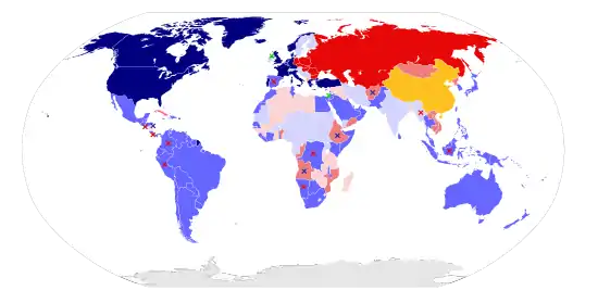 الصين وألبانيا (بلدان شيوعيان غير متحالفان مع الاتحاد السوفيتي)