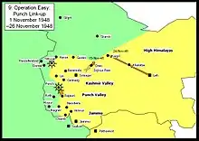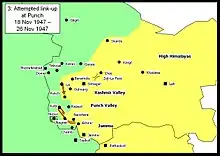 توقفت القوات الهندية عن التقدم في اتجاه القوى القبلية بعد إعادة احتلال أوري وبارامولا، وأرسلت إغاثات باتجاه الجنوب، في محاولة لتخفيف الضغط عن بونش بعد حصارها. على الرغم من أن وصول الإغاثات في نهاية المطاف إلى بونش، لم يرفع الحصار عنها. بلغت الإغاثات الثانية مدينة كوتلي، وأجليت الحاميات من المدينة مع آخرين لكنهم أجبروا على التخلي عن مناطقهم بسبب ضعف الدفاع عنها. وفي الوقت نفسه، سقطت ميربور في أيدي القوات القبلية في 25 نوفمبر 1947. اختطفت النساء الهندوسيات من قبل القوات القبلية وأخذت إلى باكستان. وتم بيعهم في بيوت الدعارة في روالبندي. قفزت حوالي 400 امرأة في الآبار في ميربور لينتحروا لكي لا يختطفوا.[46]