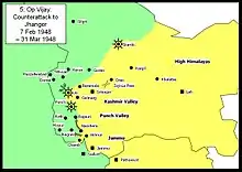 هجم الهنود على جهانغير بسبب العديد من الهجمات المضادة التي كانت عليهم من قبل الميليشيات القبلية والتي كانت تقوم بها على نحو متزايد بدعم من القوات المسلحة الباكستانية. هاجم الهنود وادي كشمير، وأعادوا احتلال تيثويل. أحرزت قوة كشافة جيلجيت تقدما جيدا في قطاع جبال الهيمالايا المرتفعة، تسللت هاته القوات رغم أنها كانت تحت الحصار، احتلت كارجيل وهزمت القوات التي كانت تنقل الإغاثات لسكاردو.