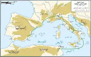 ![]() مناطق السيطرة الرومانية والقرطاجية عام 218 ق م قبل الحرب مباشرة | |||||||