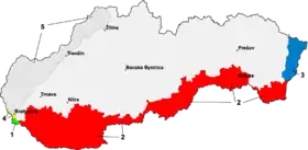 ![]() بالأزرق: المناطق التي استولت عليها المجر خلال الحرب مع سلوفاكيا. | |||||||