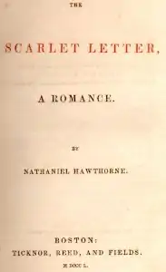 الحرف القرمزي (1850) هي رواية كتبها ناثانيال هاوثورن، وهي تعد واحدة من الروائع التي كتبها.[1] تدور أحداث الرواية في القرن السابع عشر في مدينة بوسطن المتزمتة. وتحكي قصة هستر براين التي أنجبت بعدما ارتكبت خطيئة الزنا، ثم تتوب وتحاول أن تعيش حياة كريمة. ويُحاول هوثورن استكشاف مواضيع جديدة حول القانون، والخطيئة، والإثم.