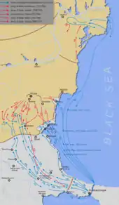 كانت الحروب البيزنطية البلغارية عبارة عن سلسلة من الصراعات الحربية بين البيزنطيين والبلغاريين التي بدأت عندما استقر البلغاريون في شبه جزيرة البلقان في القرن الخامس الميلادي وكثفوا من توسع الإمبراطورية البلغارية حتى وصلت إلى الجنوب الغربي بعد عام 680 م.[1] واستمر صراع البيزنطيين والبلغاريين طوال القرن التالي مع نجاح متغير، حتى نجح البلغاريون بقيادة كروم بإلحاق سلسلة هزائم قضت على البيزنطيين. تفاوض ابن كروم أومورتاج على معاهدة سلام لمدة 30 عامًا بعد وفاة والده عام 814م. هزم سيميون الأول الإمبراطور البلغاري أثناء الحرب الكبرى التالية البيزنطيين في عام 893م، أثناء محاولة تشكيل إمبراطورية أوروبا الشرقية الكبيرة، لكن جهوده باءت بالفشل.