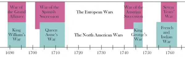 قائمة بحروب أمريكا الشمالية والحروب الأوروبية المرتبطة بها، بالتسلسل:
