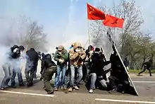 يتهمه خصومه بالفوضوية بسبب أعمال الشغب التي يقوم بها دوما أنصاره الشباب، ويتميز براية ماوتسي تونغ وتشي جيفار التي تبقى مرفوعة في مظاهراتهم