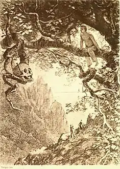 بعد مضي شهر واحد، زار جوبيتر الراوي نيابةً عن سيده وطلب منه المجيء فورًا، بسبب خوفه من أن ليغراند قد جن لأن الحشرة عضته. بمجرد وصولهم إلى الجزيرة، يصر ليغراند على أن الحشرة ستكون المفتاح لاستعادة ثروته المفقودة. قادهم في رحلة استكشافية إلى شجرة محددة وجعل جوبيتر يتسلقها حتى يجد جمجمة متسمرة على نهاية أحد الأغصان. رمى جوبتير الحشرة في اتجاه ليغراند، من خلال تجويف إحدى العينين، وخطى ليغراند إلى بقعة وبدأت المجموعة الحفر فيها. وعندما لم يجد ليغراند شيئًا هناك، جعل جوبيتر يتسلق الشجرة مرة أخرى ويرمي الحشرة من خلال عين الجمجمة الأخرى؛ واختاروا مكانًا مختلفًا للحفر، وهذه المرة وجدوا هيكلين عظميين وصندوقًا مملوء بعملات ذهبية ومجوهرات. قدّروا قيمتها الإجمالية بـ1.5 مليون دولار، ولكن ثبت أن هذا الرقم كان أقل من القيمة الفعلية عندما باعوها في النهاية.