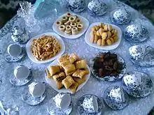 | التقديم مع | الشاي (الشاي الأخضر بالنعناع)، الحليب، القهوة، العصائر. |