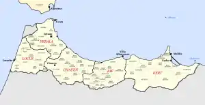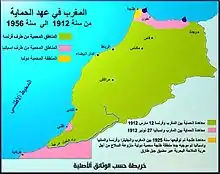 ![]() خريطة المناطق الشمالية من المغرب تحت الحماية الأسبانية (1912 - 1956). | |||||||||